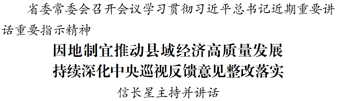 交汇点讯 4月27日,省委常委会召开会议,学习贯彻习近平总书记近期重要讲话重要指示精神,进一步部署推进中央巡视反馈意见整改落实、树立和践行正确政绩观学习教育等工作。省委书记信长星主持会议并讲话。