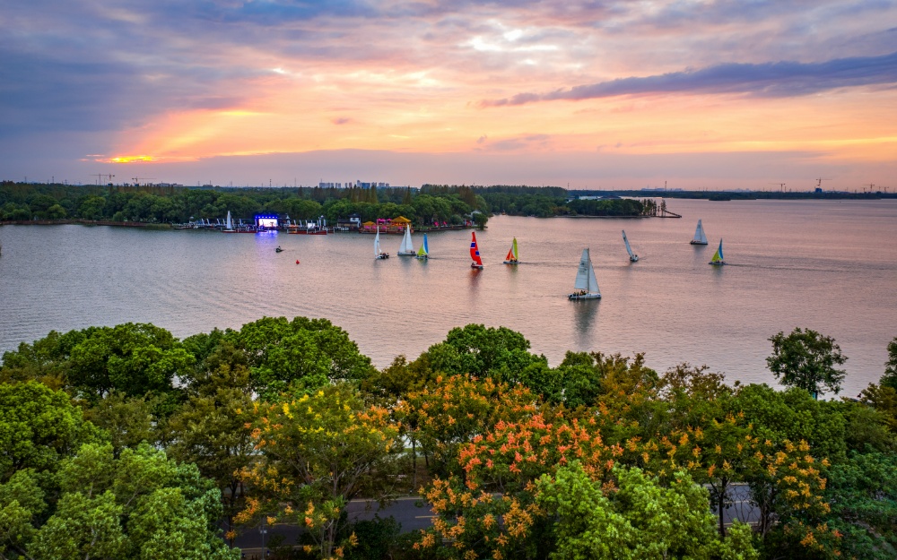 与尚湖相映成趣的,是浩渺的昆承湖。因地处城东,又称东湖,与尚湖一东一西,遥相呼应。古人一句“昆城湖水三万顷,吴儿招我入溟涬”,道尽它烟波浩渺的壮阔气象。