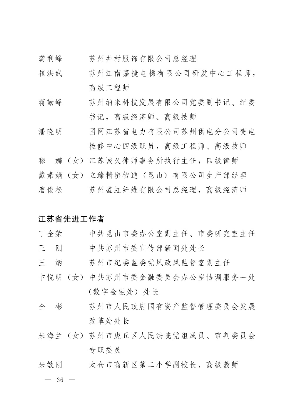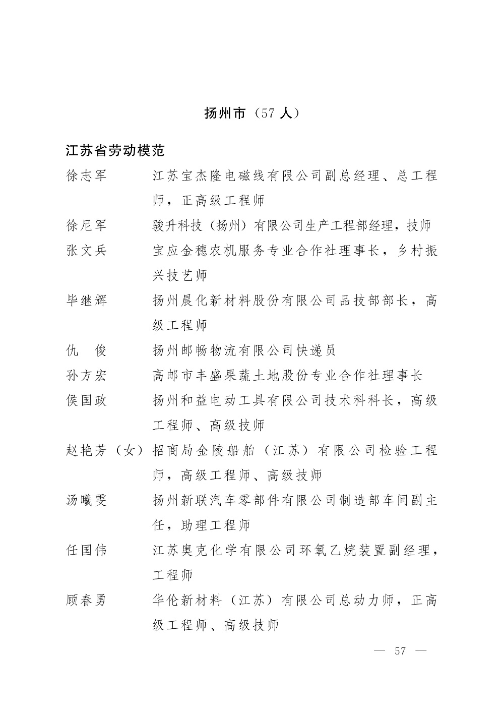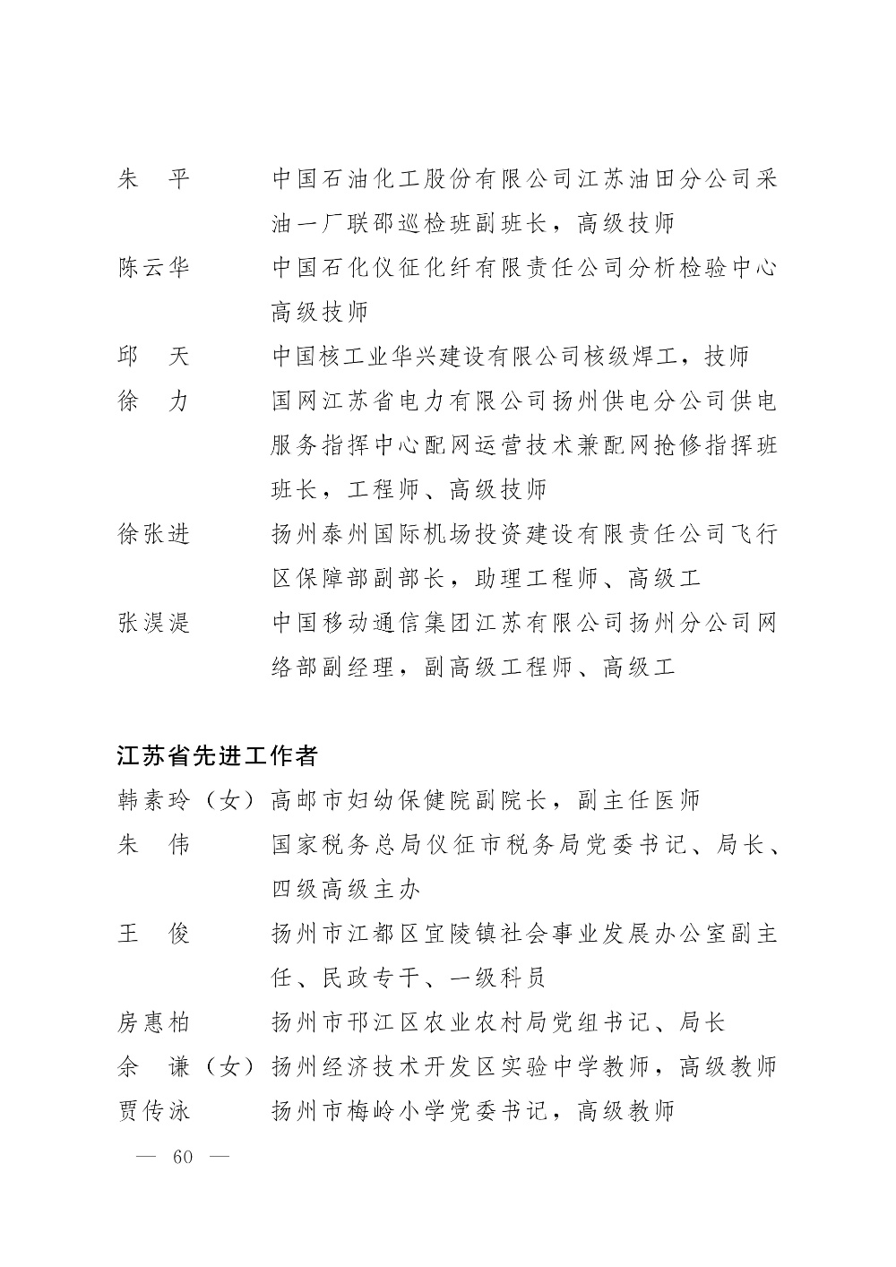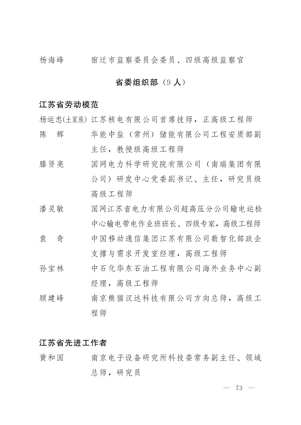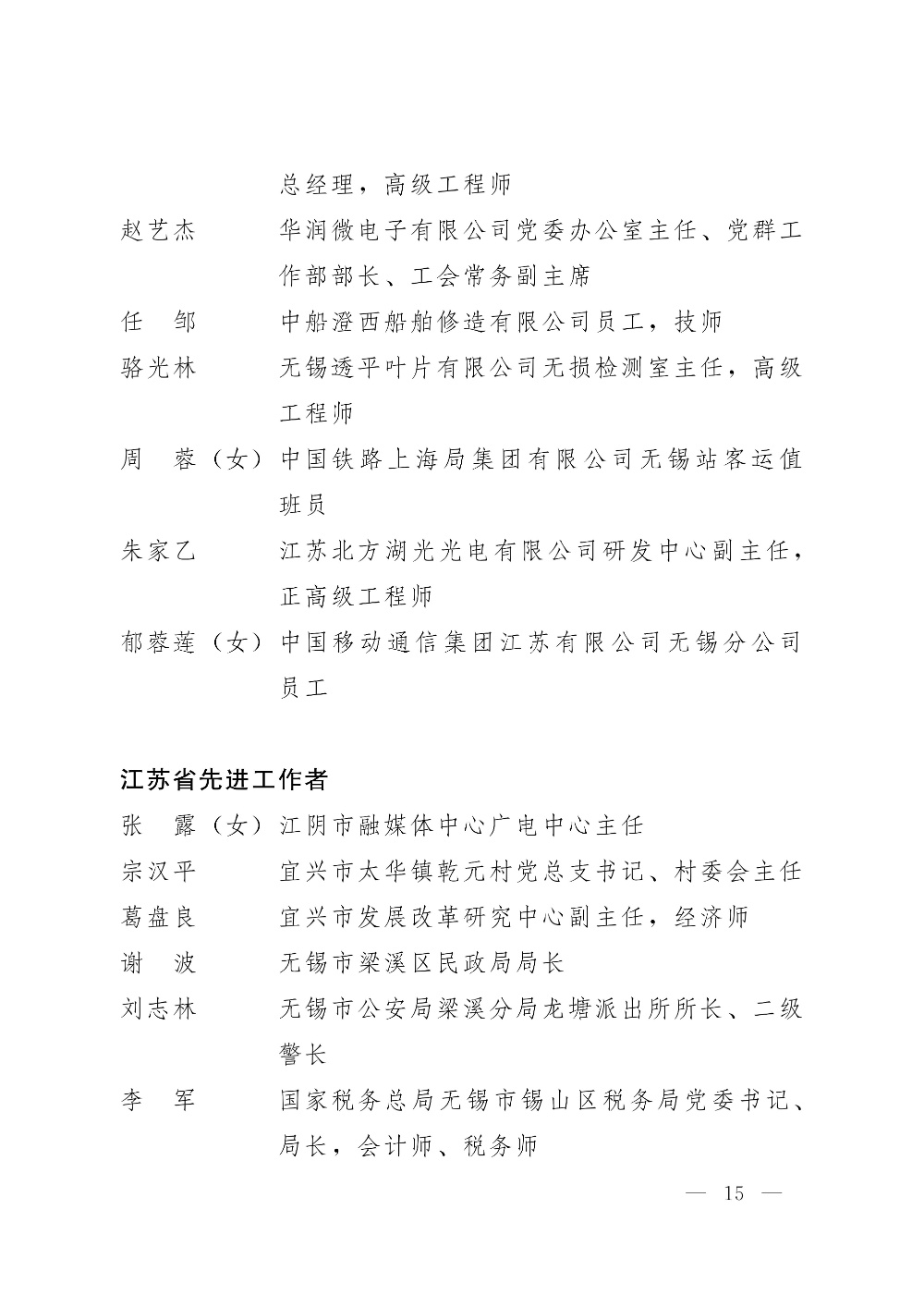 近年来,在以习近平同志为核心的党中央坚强领导下,省委、省政府认真贯彻习近平总书记重要指示精神和党中央决策部署,团结带领全省人民砥砺奋进、攻坚克难,圆满完成“十四五”主要目标任务,推动中国式现代化江苏新实践迈出新的坚实步伐。在这一奋斗历程中,全省各行各业涌现出一大批敬业奉献、锐意进取、忘我拼搏、敢为人先的先进模范人物。他们以实际行动生动诠释了劳模精神、劳动精神、工匠精神的时代内涵,充分彰显了新时代江苏劳动者的精神风貌和时代风采。为表彰他们的突出贡献,进一步凝聚起团结奋进的强大力量,省委、省政府决定,授予吴泽嵩等726人江苏省劳动模范称号,授予耿丽红等274人江苏省先进工作者称号。