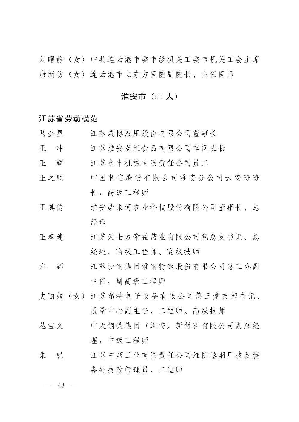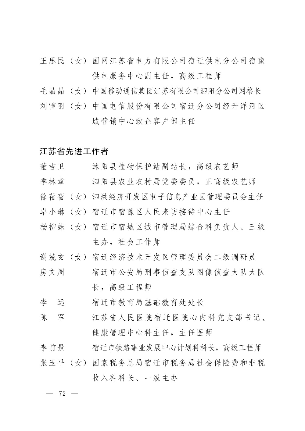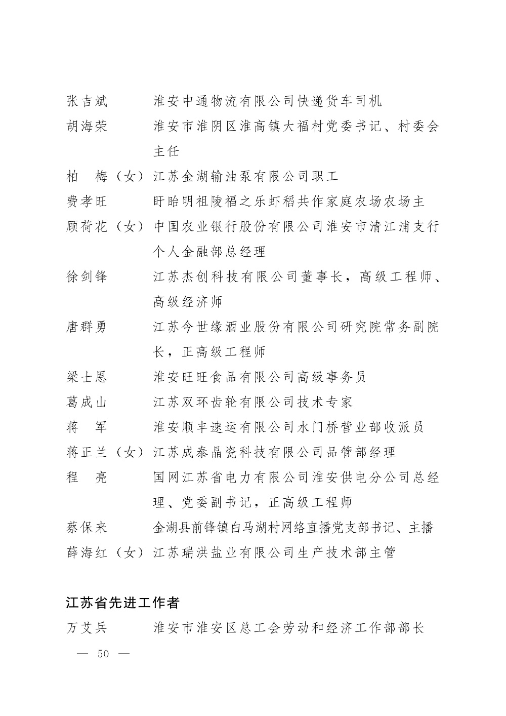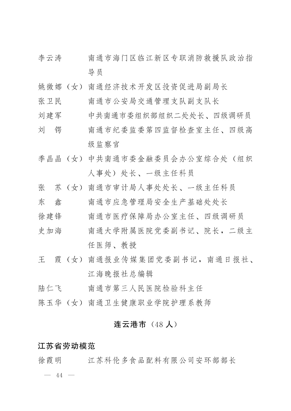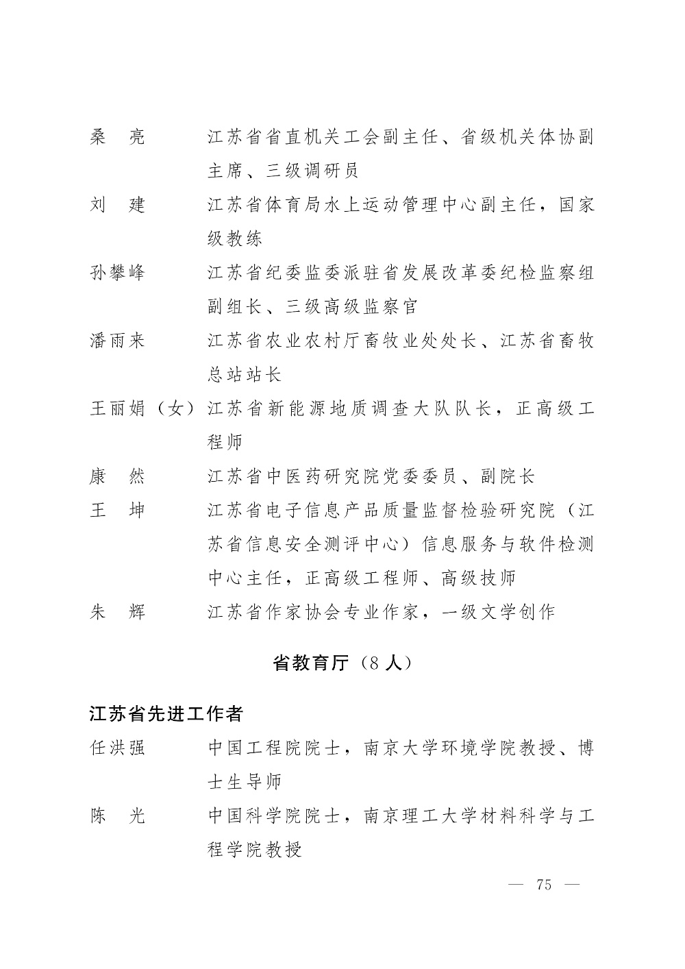 近年来,在以习近平同志为核心的党中央坚强领导下,省委、省政府认真贯彻习近平总书记重要指示精神和党中央决策部署,团结带领全省人民砥砺奋进、攻坚克难,圆满完成“十四五”主要目标任务,推动中国式现代化江苏新实践迈出新的坚实步伐。在这一奋斗历程中,全省各行各业涌现出一大批敬业奉献、锐意进取、忘我拼搏、敢为人先的先进模范人物。他们以实际行动生动诠释了劳模精神、劳动精神、工匠精神的时代内涵,充分彰显了新时代江苏劳动者的精神风貌和时代风采。为表彰他们的突出贡献,进一步凝聚起团结奋进的强大力量,省委、省政府决定,授予吴泽嵩等726人江苏省劳动模范称号,授予耿丽红等274人江苏省先进工作者称号。