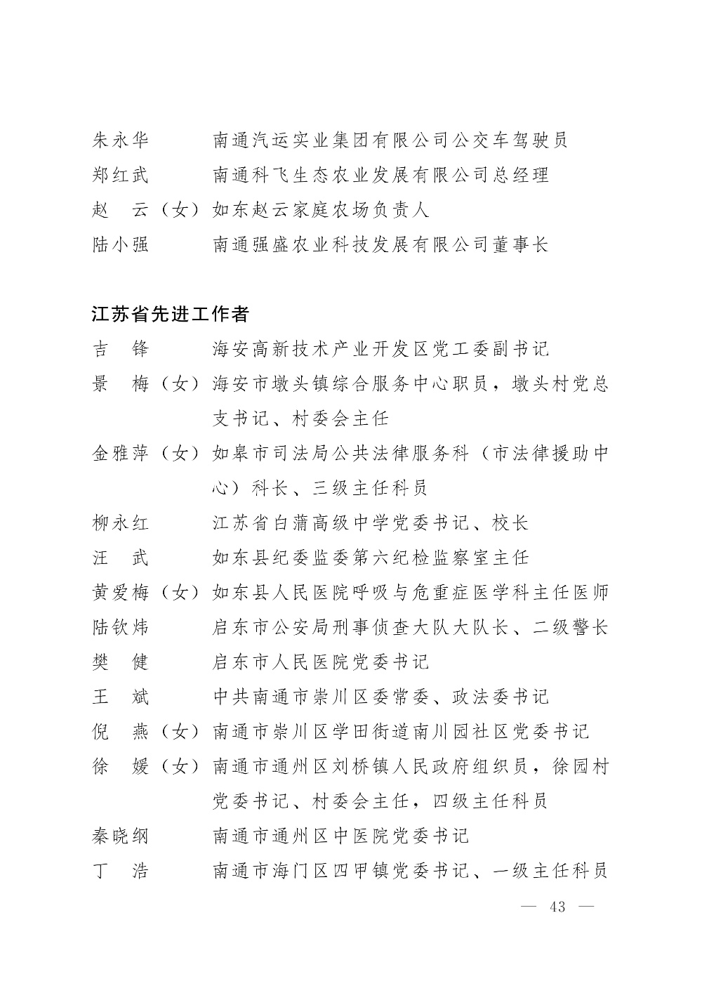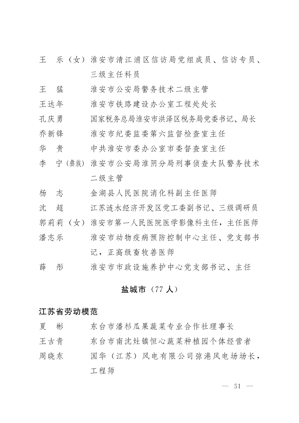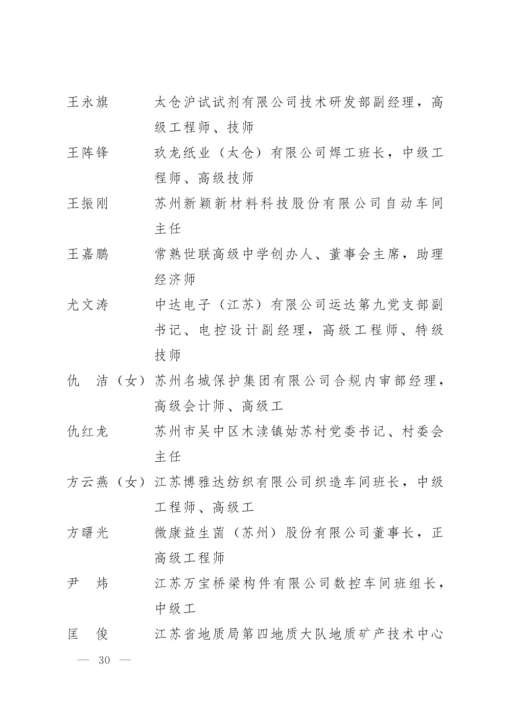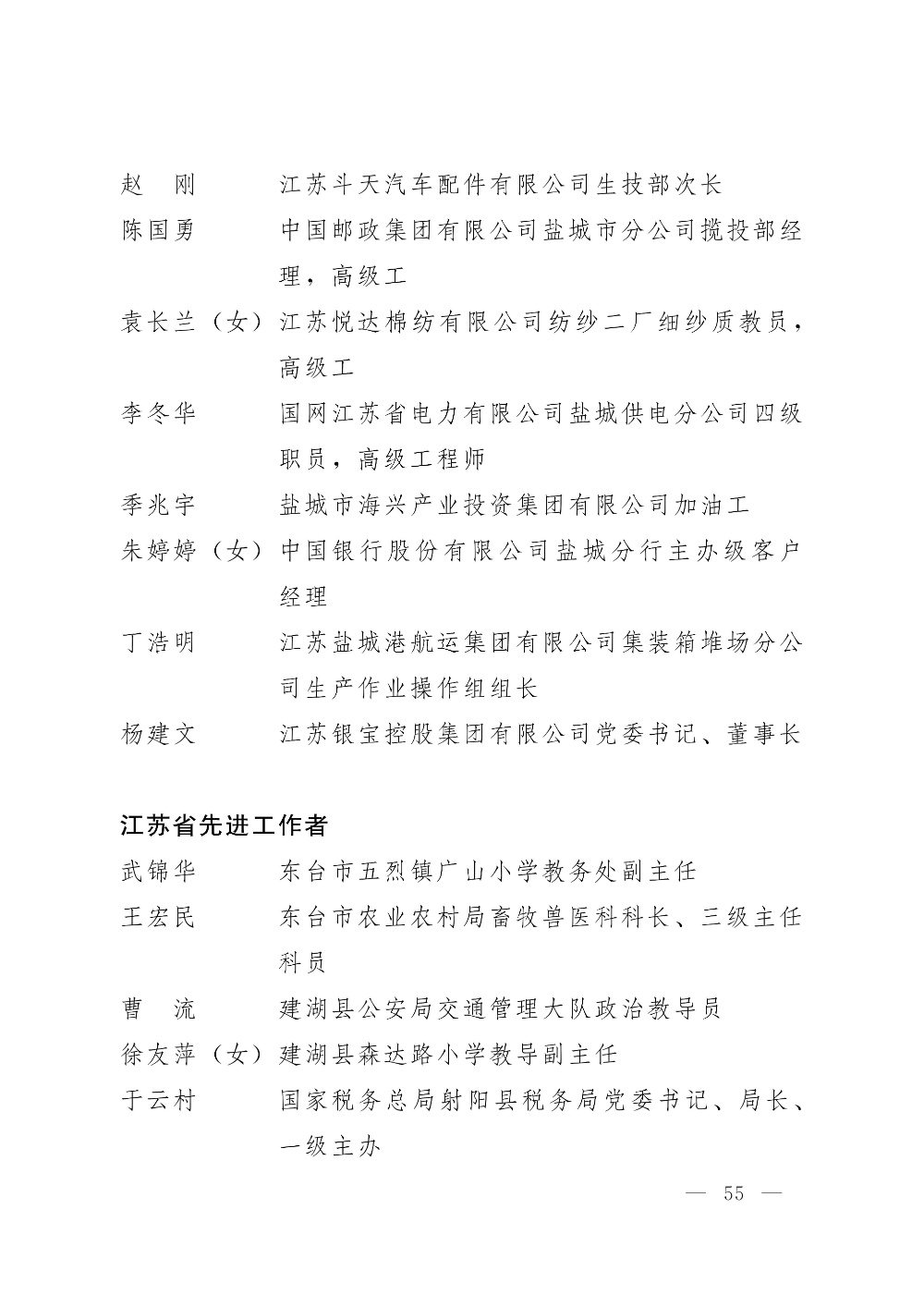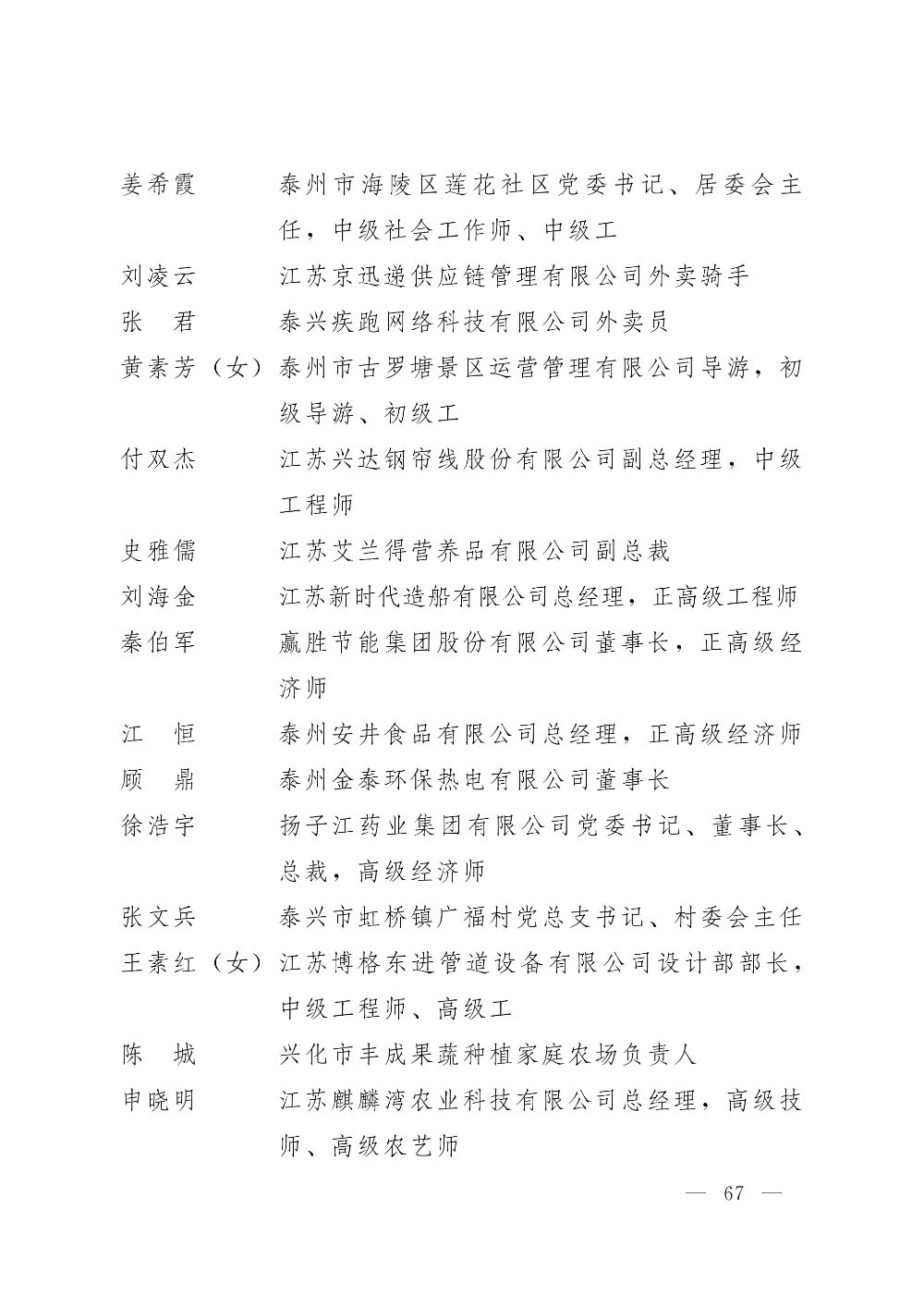 近年来,在以习近平同志为核心的党中央坚强领导下,省委、省政府认真贯彻习近平总书记重要指示精神和党中央决策部署,团结带领全省人民砥砺奋进、攻坚克难,圆满完成“十四五”主要目标任务,推动中国式现代化江苏新实践迈出新的坚实步伐。在这一奋斗历程中,全省各行各业涌现出一大批敬业奉献、锐意进取、忘我拼搏、敢为人先的先进模范人物。他们以实际行动生动诠释了劳模精神、劳动精神、工匠精神的时代内涵,充分彰显了新时代江苏劳动者的精神风貌和时代风采。为表彰他们的突出贡献,进一步凝聚起团结奋进的强大力量,省委、省政府决定,授予吴泽嵩等726人江苏省劳动模范称号,授予耿丽红等274人江苏省先进工作者称号。