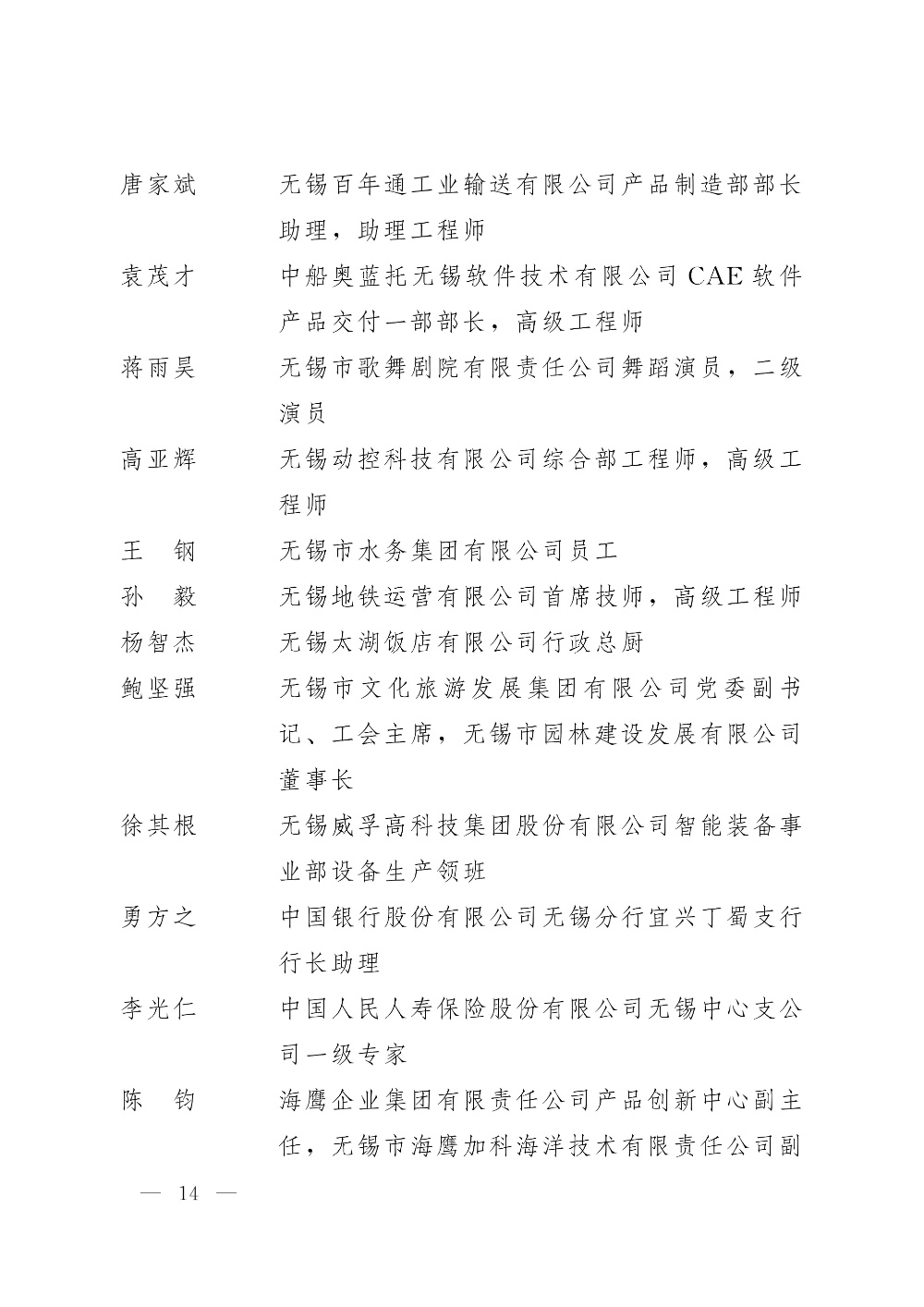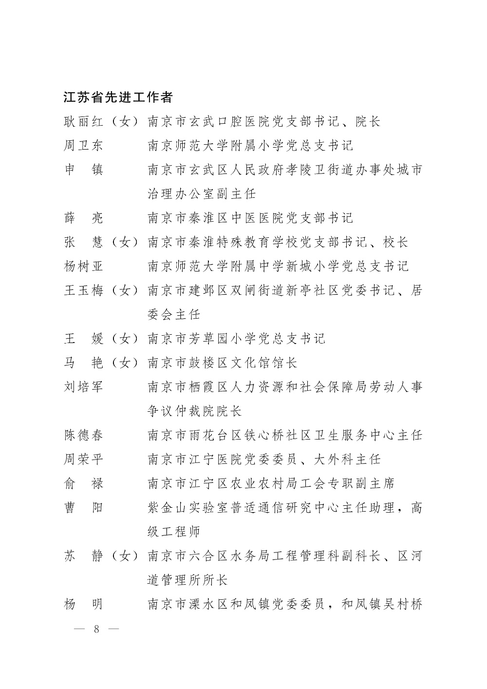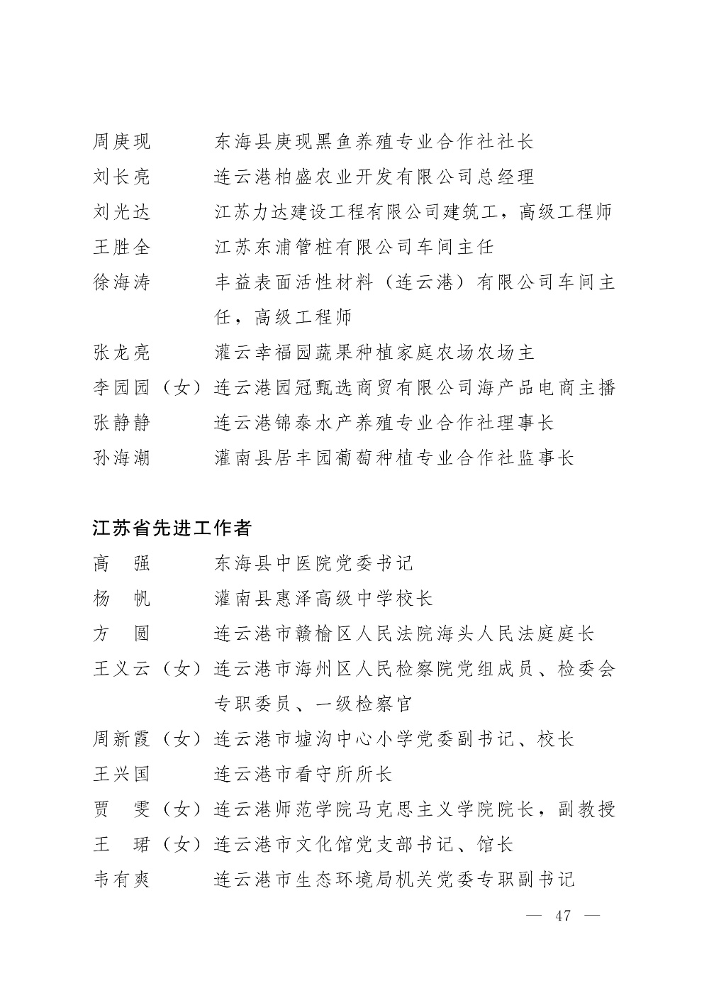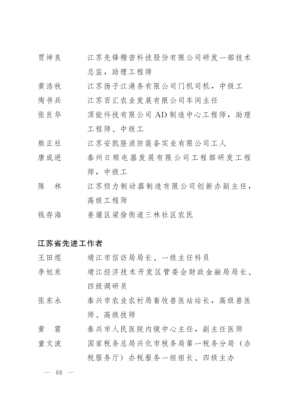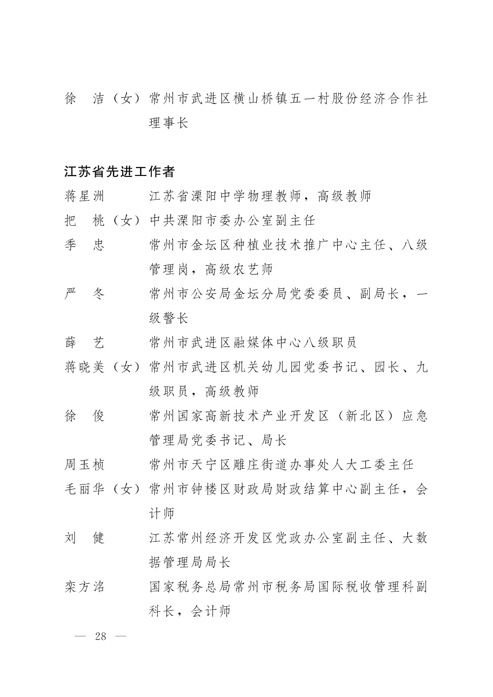 近年来,在以习近平同志为核心的党中央坚强领导下,省委、省政府认真贯彻习近平总书记重要指示精神和党中央决策部署,团结带领全省人民砥砺奋进、攻坚克难,圆满完成“十四五”主要目标任务,推动中国式现代化江苏新实践迈出新的坚实步伐。在这一奋斗历程中,全省各行各业涌现出一大批敬业奉献、锐意进取、忘我拼搏、敢为人先的先进模范人物。他们以实际行动生动诠释了劳模精神、劳动精神、工匠精神的时代内涵,充分彰显了新时代江苏劳动者的精神风貌和时代风采。为表彰他们的突出贡献,进一步凝聚起团结奋进的强大力量,省委、省政府决定,授予吴泽嵩等726人江苏省劳动模范称号,授予耿丽红等274人江苏省先进工作者称号。