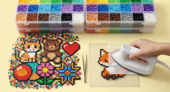 家长需高度警惕,儿童进行加热、熨烫时必须全程看护,严禁儿童独自操作电熨斗。拼豆类玩具包含诸多小零件,切勿让3岁以下的儿童接触或玩耍,避免误吞窒息风险。