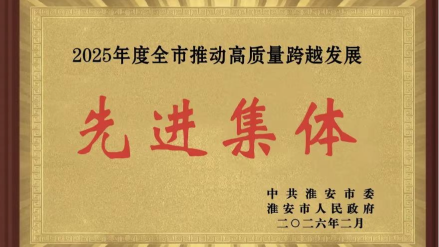南京银行淮阴支行荣获淮安市淮阴区“2025年度全区推动高质量跨越发展先进集体”