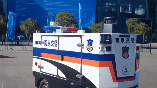 南京交警无人驾驶AI巡逻车“警小宁”亮相世界智能制造大会