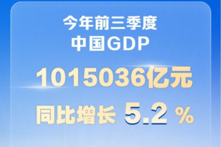 前三季度中国GDP1015036亿元,同比增长5.2%