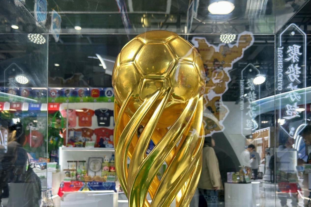 进博会微镜头|来进博会“出差”的“苏超”冠军奖杯,表面金箔来自南京