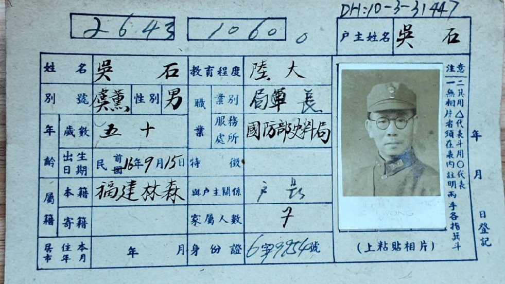 找到了!吴石烈士户籍卡首次公开