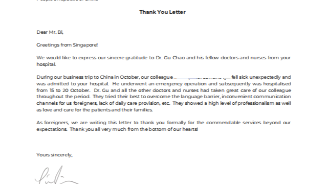 一封来自新加坡的感谢信,送到江苏这家医院……