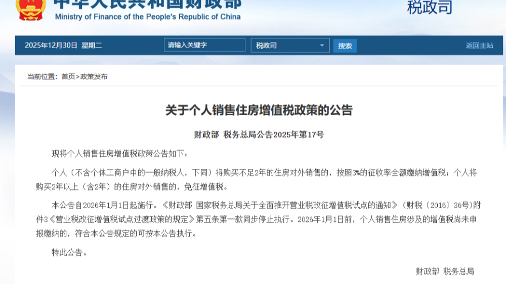 《中华人民共和国增值税法实施条例》明年1月1日起施行