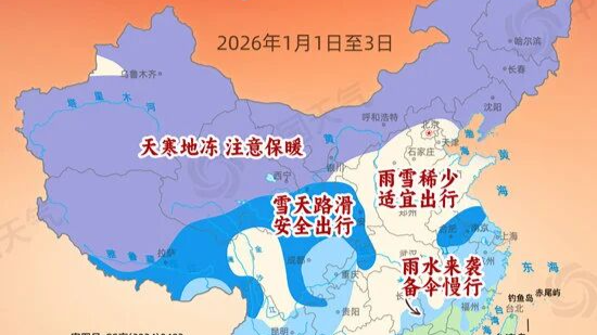 2026元旦出行地图发布,跨年夜至元旦江苏将有雨雪天气