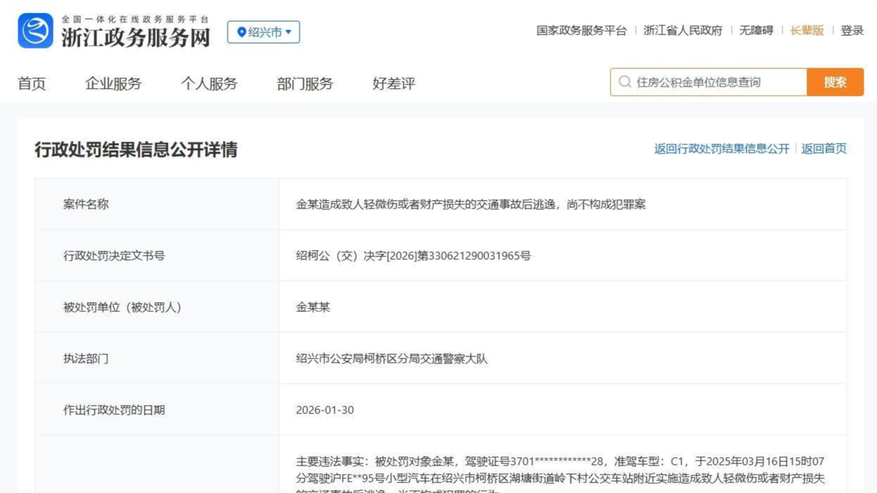 演员金晨交通肇事逃逸被罚1500元,警方判定其不构成犯罪