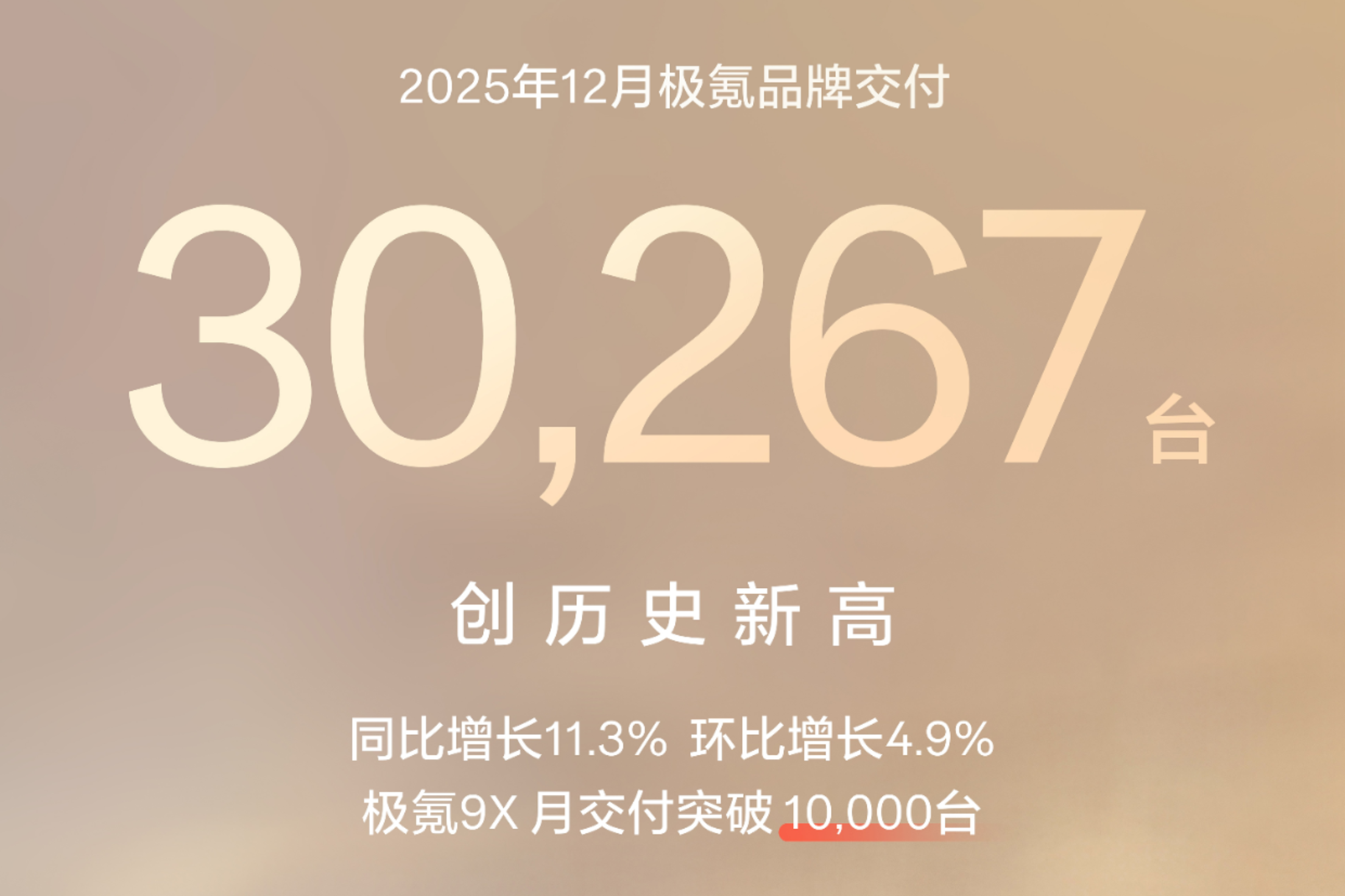 创历史新高!2025年12月交付超3万台,极氪全年销量超22.4万台
