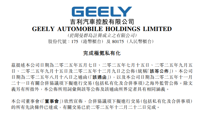 吉利宣布完成极氪私有化 极氪从纽交所退市