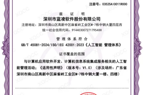 全球首个AI管理体系认证!蓝凌软件通过