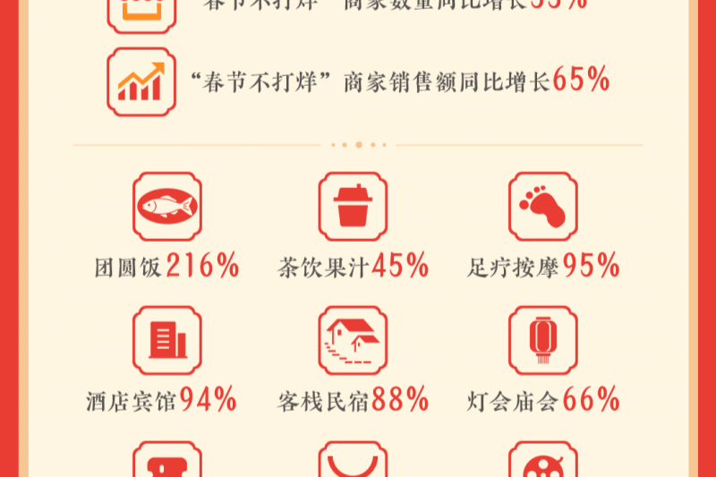 抖音生活服务:“春节不打烊”营业商家数增长33%,商家销售额攀升65%