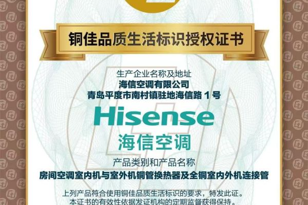 真铜实料!海信空调获国际铜业协会“铜佳品质生活标识”授权