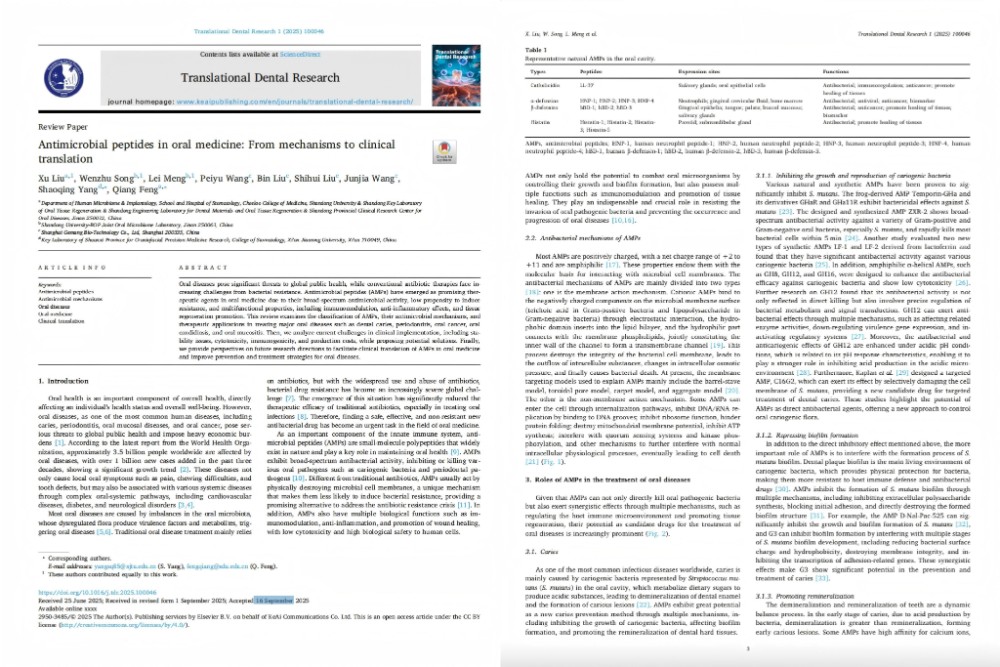 BOP抗菌肽研究获国际期刊发表,生物科技引领口腔行业再度升级