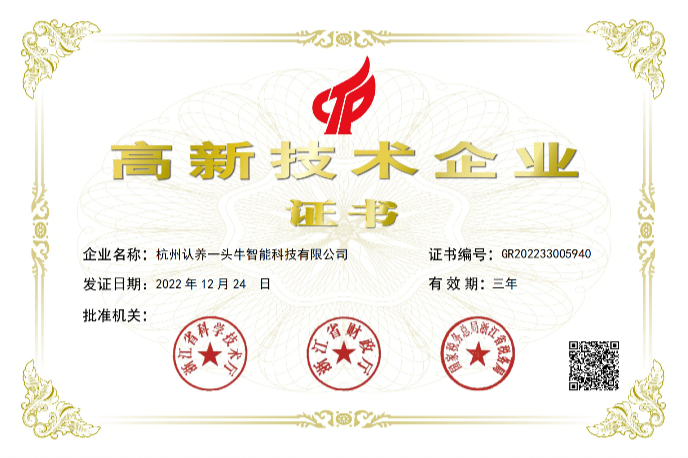 再添国字头认证,认养一头牛获评国家高新技术企业